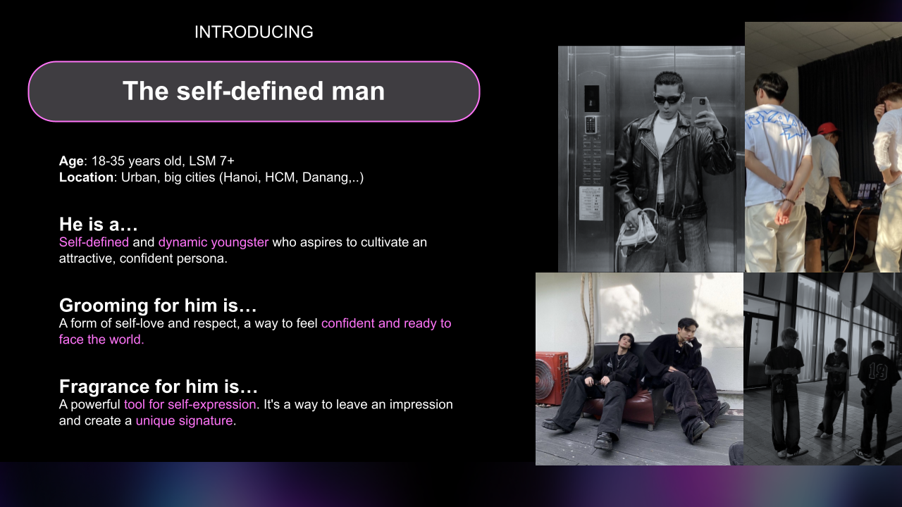 Context: - Men’s shower gel market is growing fast, fragrance is the #1 purchase driver for men. - Gap in market: current options are either low-quality mass scents or expensive premium products.